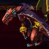 攻击:震地(冲击波, 全图范围),坚硬的鳞(使用无色小晶体时出现, 出现高HP护甲),落石(被浮空时出现),怒吼(全图范围)