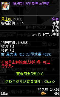 | 30 | 圣物 :荣耀的守夜女神的羊毛护腿 | *Lv29~36普通地下城怪物掉落 |