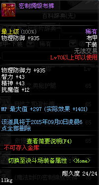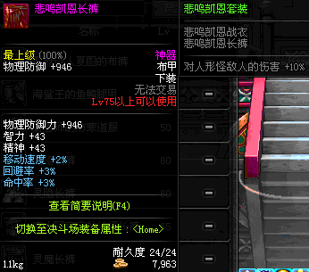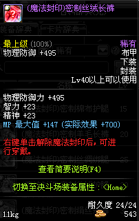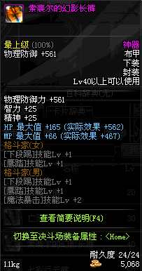 | 40 | 索裴尔的幻影长裤 | *Lv39~46普通地下城怪物掉落 *在加百利的神秘商店购买 |