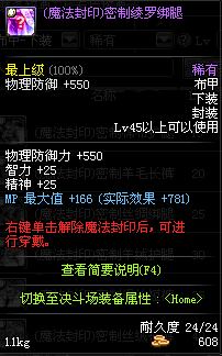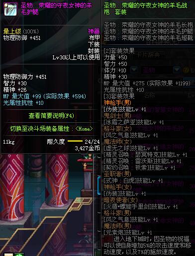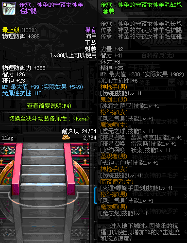 | 25 | 圣物 :守夜女神的羊毛护腿 | *Lv24~31普通地下城怪物掉落 | ||