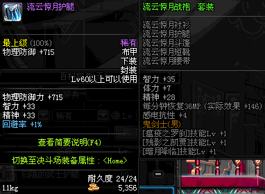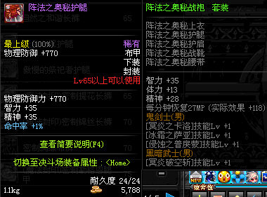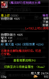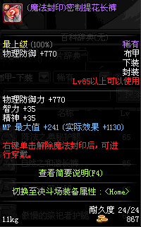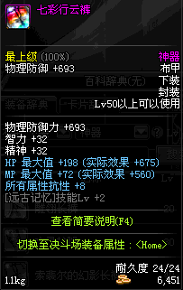 | 50 | 七彩行云裤 | *Lv50~56普通地下城怪物掉落 *在加百利的神秘商店购买 |