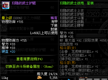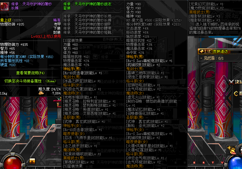 | 鬼剑士 | 神枪手 | 格斗家 | 魔法师 | 圣职者 | 暗夜使者 | 布甲 | 皮甲 | 重甲 | 轻甲 | 板甲 | 饰品 |