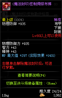 | 80 | 圣物 :天马守护神的薄纱长裤 | *Lv80~86普通地下城怪物掉落 | ||