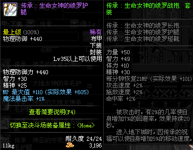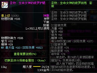 | 35 | 圣物 :生命女神的绫罗护腿 | *Lv34~41普通地下城怪物掉落 |