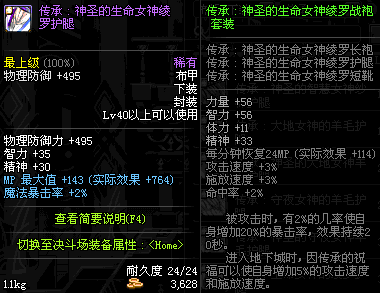 | 40 | 圣物 :荣耀的生命女神的绫罗护腿 | *Lv39~46普通地下城怪物掉落 |