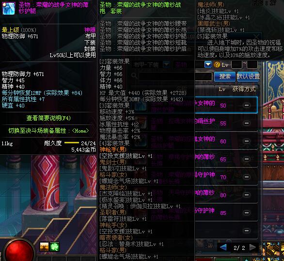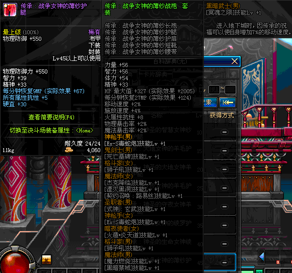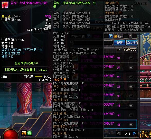 | 45 | 圣物 :战争女神的薄纱护腿 | *Lv45~51普通地下城怪物掉落 |