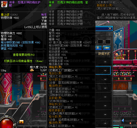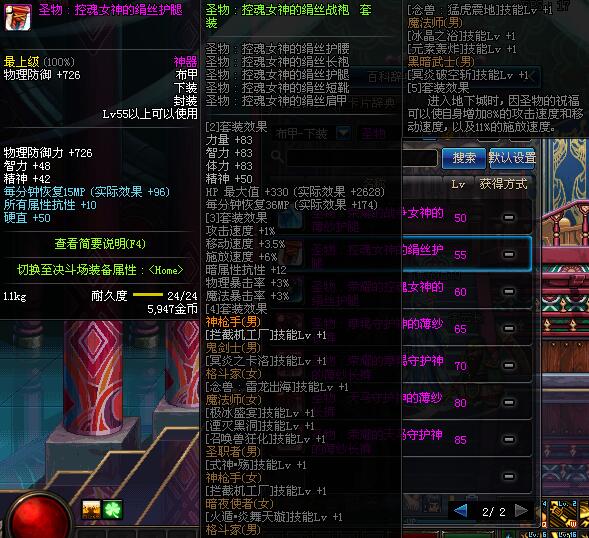 | 55 | 圣物 :控魂女神的绢丝护腿 | *Lv53~61普通地下城怪物掉落 |