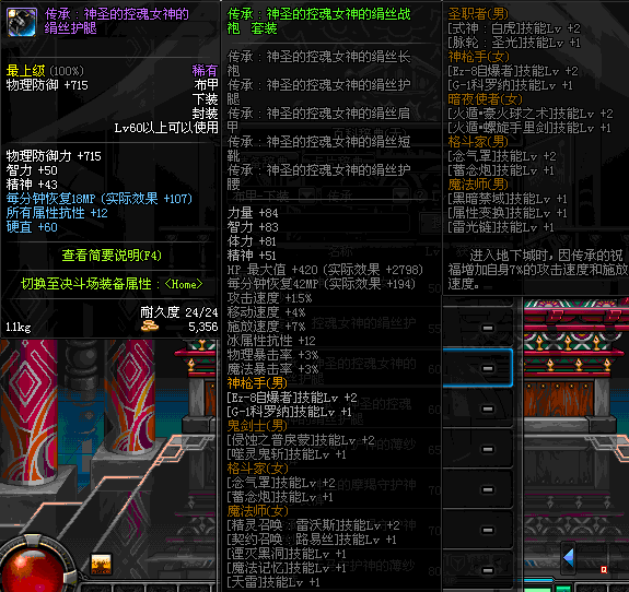 | 60 | 圣物 :荣耀的控魂女神的绢丝护腿 | *Lv58~66普通地下城怪物掉落 |