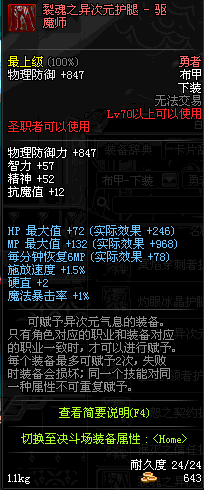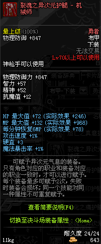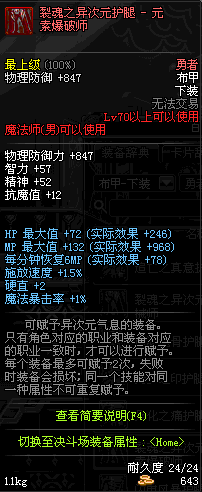 | 70 | 裂魂之异次元护腿 - 气功师 | |||