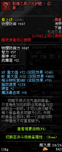 | 70 | 裂魂之异次元护腿 - 忍者 | |||