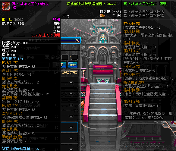 | 70 | *设计图(70LV以上普通地下城 登场的NPC加百利 出售) *战争之王的绢丝长裤 → 用远古神器装备进化书升级(NPC船长鲁特 出售) |