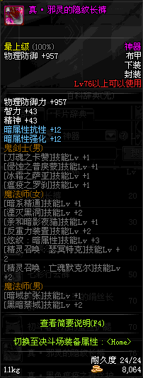 | 辅助装备: | 全职业 鬼剑士 女鬼剑 女格斗 男格斗 神枪手 女枪手 魔法师 男法师 圣职者 暗夜使者 守护者 |