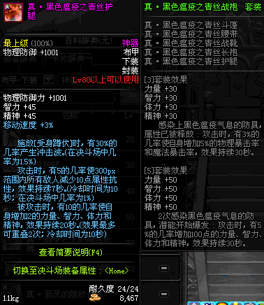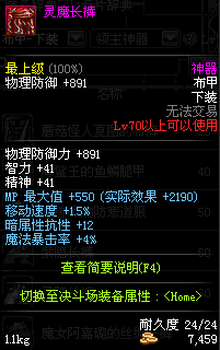 | 70 | 灵魔长裤 | *骷髅骑士 掉落(瘟疫之源) *在NPC西岚的物品店购买(银色陨石×284) |