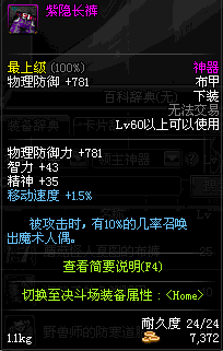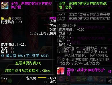 | 10 | 圣物 :荣耀的智慧女神的纱棉护腿 | *Lv8~14普通地下城怪物掉落 |