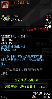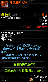 | 85 | 逝魔之暴烈长裤 | *Lv84~91深渊地下城怪物掉落 | 逝魔之力 套装 | |