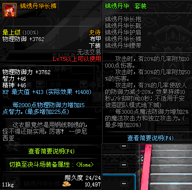 | 75 | 锦绣丹华长裤 | *Lv74~81深渊地下城怪物掉落 | 锦绣丹华 套装 | |