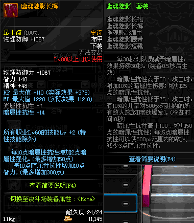 | 80 | 幽魂魅影长裤 | *Lv79~86深渊地下城怪物掉落 | 幽魂魅影 套装 | |