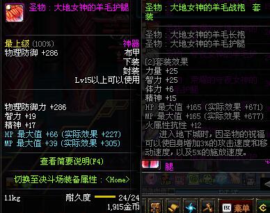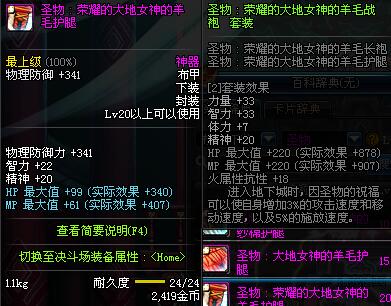 | 20 | 圣物 :荣耀的大地女神的羊毛护腿 | *Lv19~26普通地下城怪物掉落 | ||