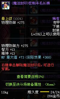 | 20 | (魔法封印)密制羊毛长裤 | *Lv19~26普通地下城怪物掉落 *完成[烦人的蚂蚁]任务 *使用Lv19~26怪物掉落的设计图进行制作 |