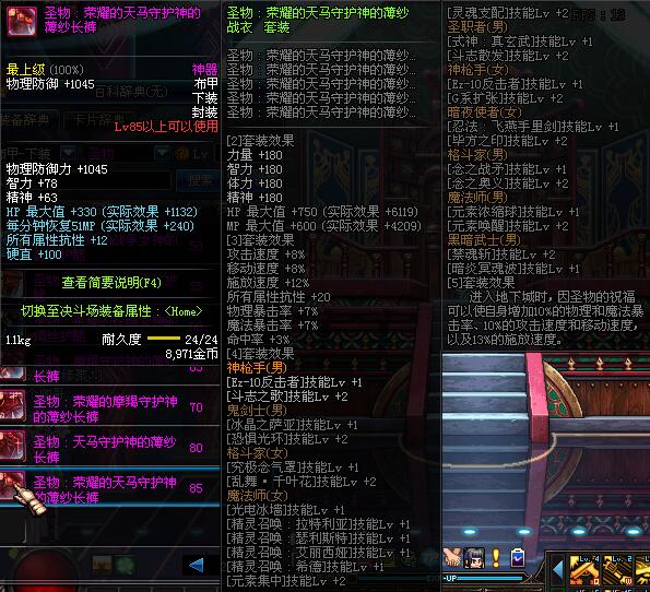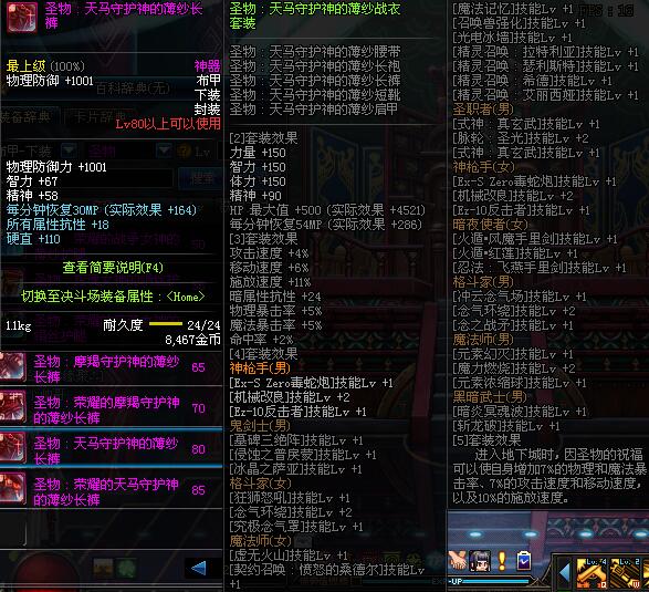 | 85 | 圣物 :荣耀的天马守护神的薄纱长裤 | *Lv85~91普通地下城怪物掉落 | ||