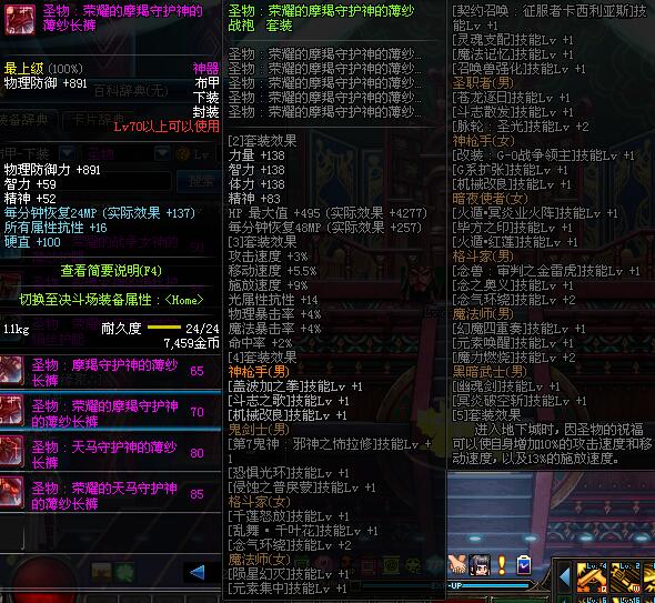 | 70 | 圣物 :荣耀的摩羯守护神的薄纱长裤 | *Lv70~76普通地下城怪物掉落 |