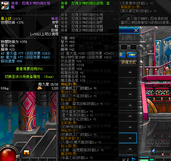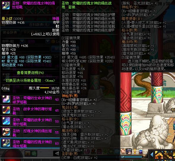 | 55 | 圣物 :控魂女神的绢丝短靴 | *Lv53~61普通地下城怪物掉落 |