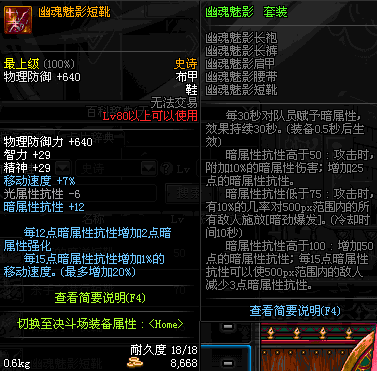 | 80 | 幽魂魅影短靴 | *Lv79~86深渊地下城怪物掉落 | 幽魂魅影 套装 | |