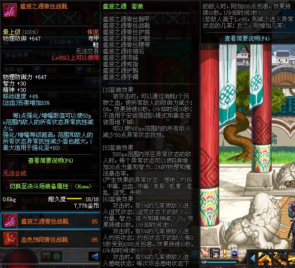 | 85 | 瘟疫之源青丝战靴 | *昨日之巴斯顿 掉落 (在远古地下城里出没。) *从NPC鲁特的物品店出售的[瘟疫之源防具礼盒]中获得 |