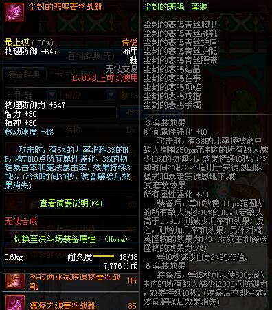 | 85 | 逝魔之风速短靴 | *Lv84~91深渊地下城怪物掉落 | 逝魔之力 套装 | |