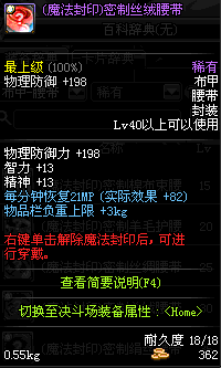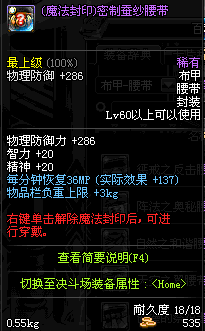 | 55 | 圣物 :控魂女神的绢丝腰带 | *Lv53~61普通地下城怪物掉落 |