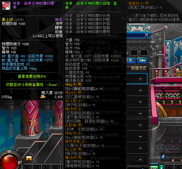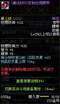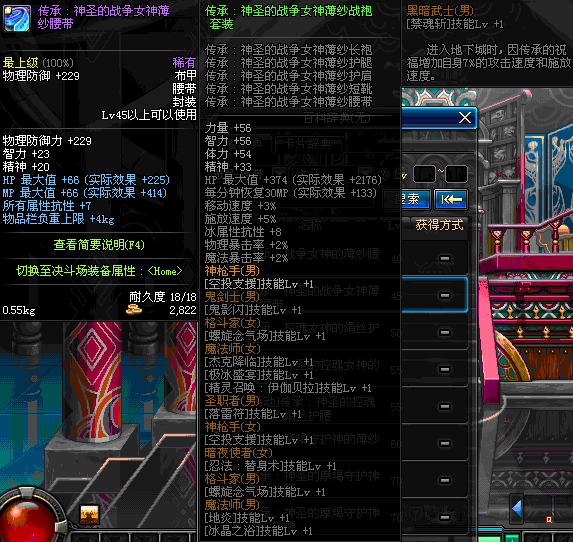 | 45 | 圣物 :战争女神的薄纱腰带 | *Lv45~51普通地下城怪物掉落 |