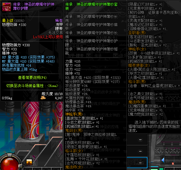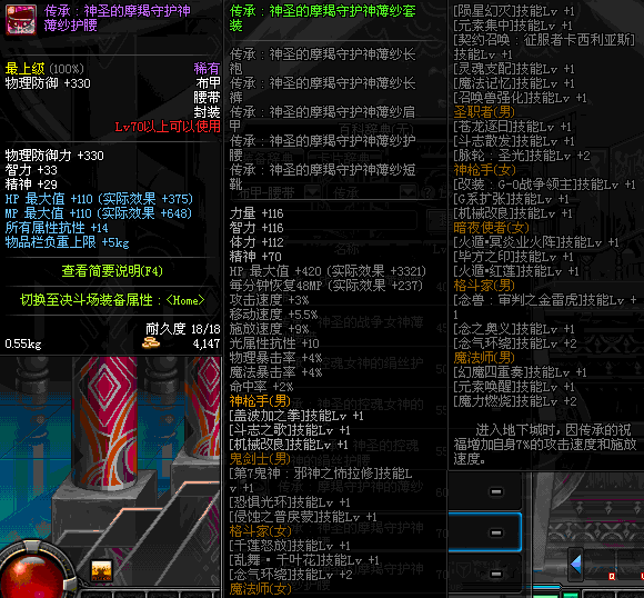 | 辅助装备: | 全职业 鬼剑士 女鬼剑 女格斗 男格斗 神枪手 女枪手 魔法师 男法师 圣职者 暗夜使者 守护者 |