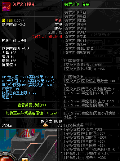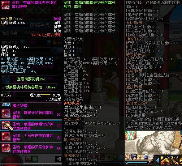 | 70 | 圣物 :荣耀的摩羯守护神的薄纱腰带 | *Lv70~76普通地下城怪物掉落 |
