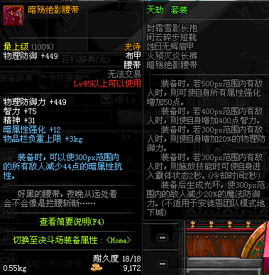 | 85 | 暗殇绝影腰带 | *Lv84~91深渊地下城怪物掉落 | 天劫 套装 | |