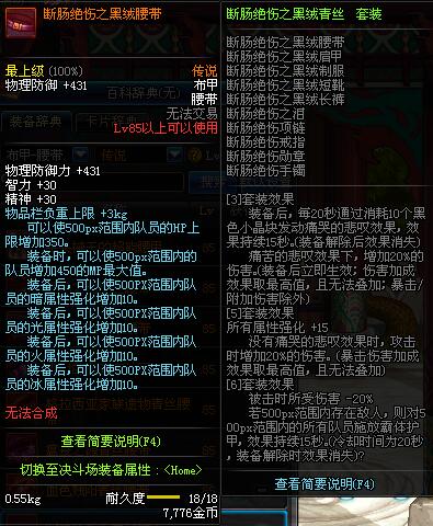 | 85 | 断肠绝伤之黑绒腰带 | 昨日之巴斯顿 掉落 (在远古地下城里出没。) *从NPC鲁特的物品店出售的[断肠绝伤防具礼盒]中获得 |