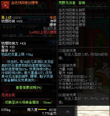 | 85 | 血色残阳青丝腰带 | *昨日之巴斯顿 掉落 (在远古地下城里出没。) *从NPC鲁特的物品店出售的[血色残阳防具礼盒]中获得 |