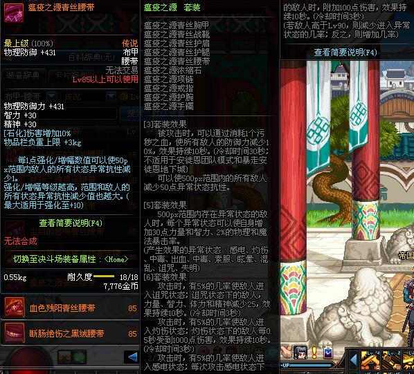 | 85 | 瘟疫之源青丝腰带 | *昨日之巴斯顿 掉落 (在远古地下城里出没。) *从NPC鲁特的物品店出售的[瘟疫之源防具礼盒]中获得 |
