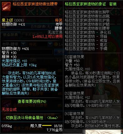 | 85 | 圣物 :荣耀的天马守护神的薄纱腰带 | *Lv85~91普通地下城怪物掉落 | ||