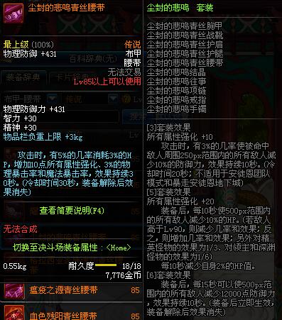 | 85 | 逝魔之灵心腰带 | *Lv84~91深渊地下城怪物掉落 | 逝魔之力 套装 | |