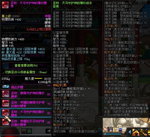 | 80 | 圣物 :天马守护神的薄纱腰带 | *Lv80~86普通地下城怪物掉落 | ||