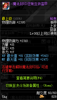 | 15 | (魔法封印)密制钢铁胸甲 | *Lv13~21普通地下城怪物掉落 *完成[魔法封印防具]摩根的研究(1/2) *使用Lv13~21怪物掉落的设计图进行制作 |