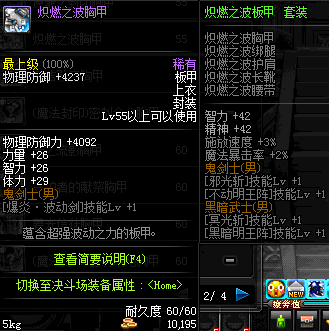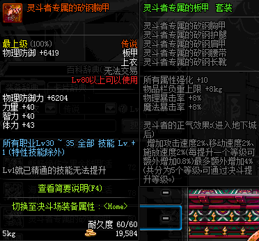 | 鬼剑士 | 神枪手 | 格斗家 | 魔法师 | 圣职者 | 暗夜使者 | 布甲 | 皮甲 | 重甲 | 轻甲 | 板甲 | 饰品 |