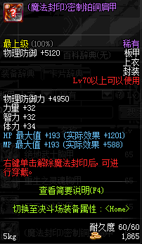 | 魔法封印 板甲-上衣 | ||||