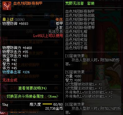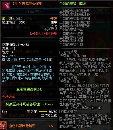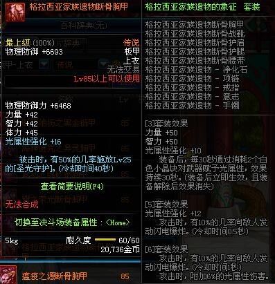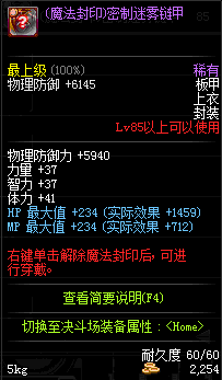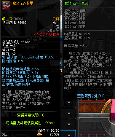 | 85 | 魔战无双胸甲 | *Lv84~91深渊地下城怪物掉落 | 魔战无双 套装 | |