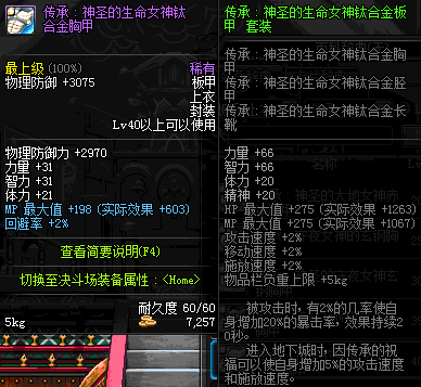 | 40 | 圣物 :荣耀的生命女神的钛合金胸甲 | *Lv39~46普通地下城怪物掉落 |