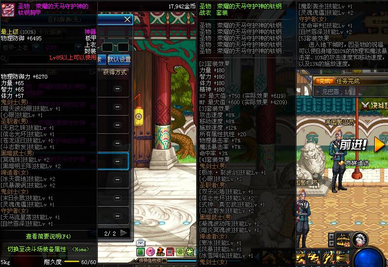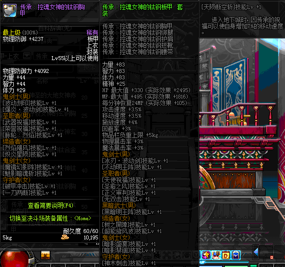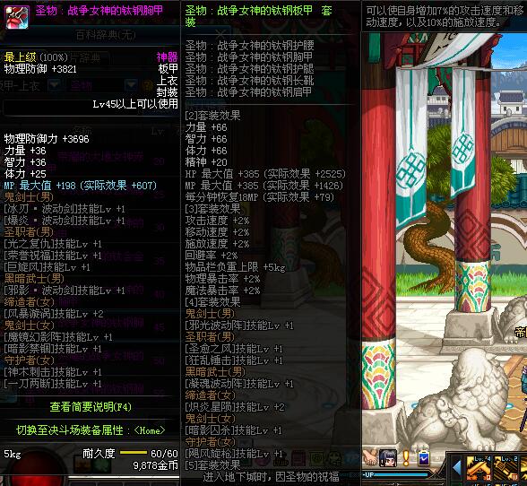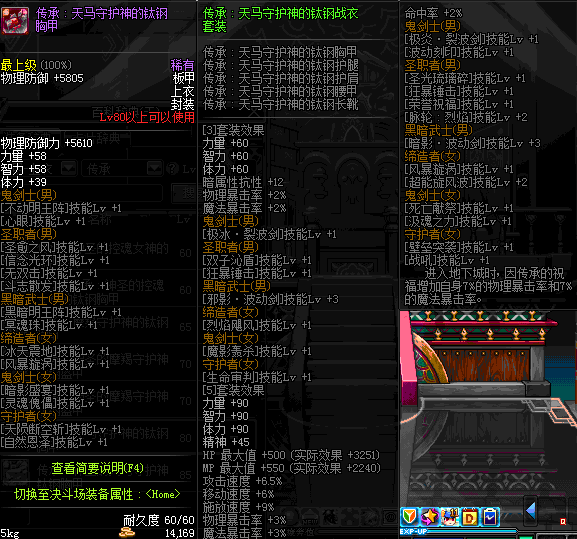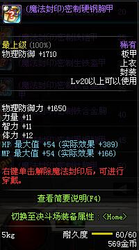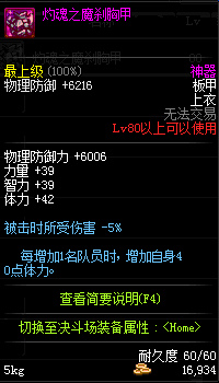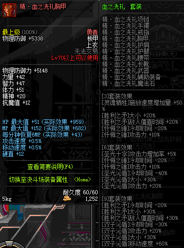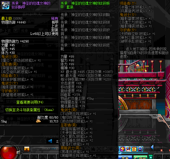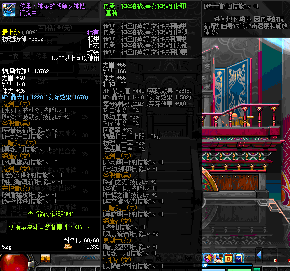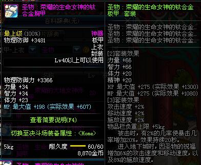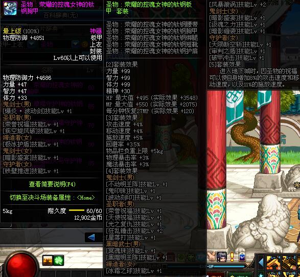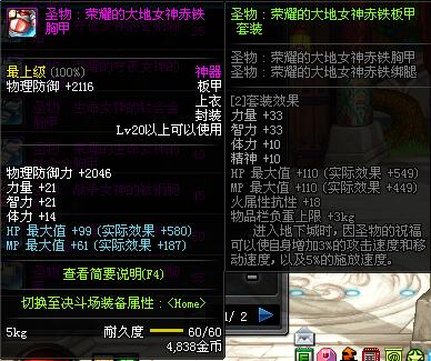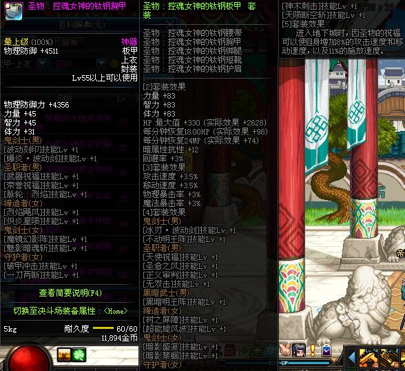 | 60 | 圣物 :荣耀的控魂女神的钛钢胸甲 | *Lv58~66普通地下城怪物掉落 |