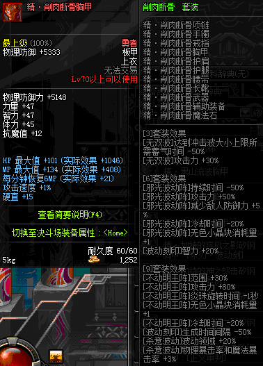 | 45 | 巨兽之魂胸甲 | *长脚罗特斯 掉落(罗特斯的宫殿) *伊莎杜拉 出售(阿拉德陨石×147) |