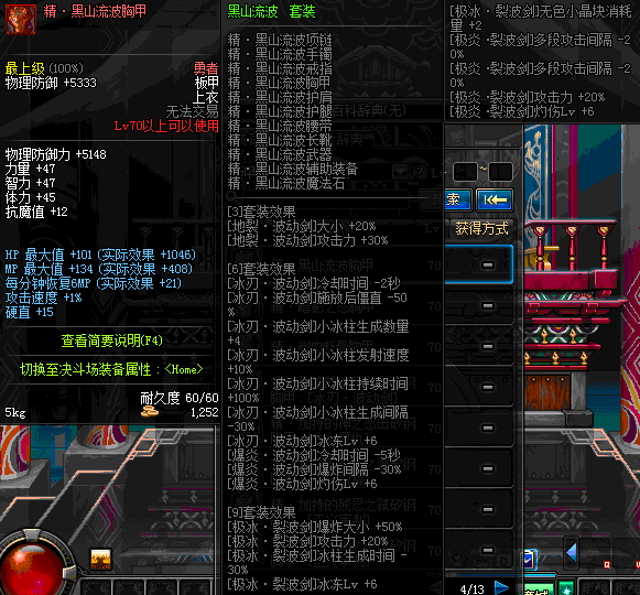| 70 | 圣物 :荣耀的摩羯守护神的钛钢胸甲 | *Lv70~76普通地下城怪物掉落 |