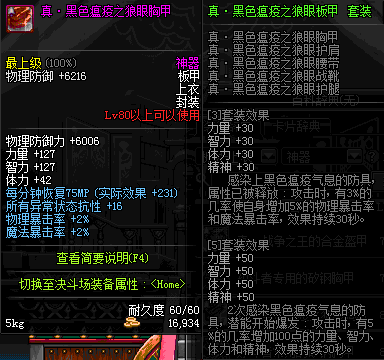 | 80 | 真 · 黑色瘟疫之狼眼胸甲 | *设计图(70LV以上普通地下城 登场的NPC加百利 出售) *黑色瘟疫之狼眼胸甲 → 用远古神器装备进化书升级(NPC船长鲁特 出售) |