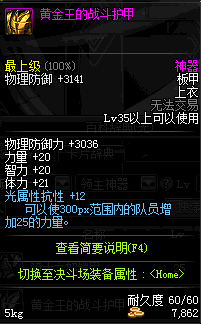 | 35 | 黄金王的战斗护甲 | *黄金王维迪尔 掉落(黄金矿洞) *在NPC克伦特的物品店购买(阿拉德陨石×92) |